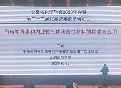 2023年10月27-29日,由安徽省化学会主办、巢湖学院化学与材料工程学院承办的“安徽省化学学会2023年会暨第二十二届化学教学改革研讨会”在巢湖召开。大会围绕高等学校化学、化工、材料及相关本科专业一流专业和一流课程的建设、实验室安全、学科发展与学位点建设、应用型人才培养质量以及课程思政等主题进行了交流和研讨,来自全省高校化学、化工相关教师及企业代表200余人出席会议,我校永利集团304am登录郑斌教授率队参加本次会议,并应邀在大会青年论坛上做学术交流。