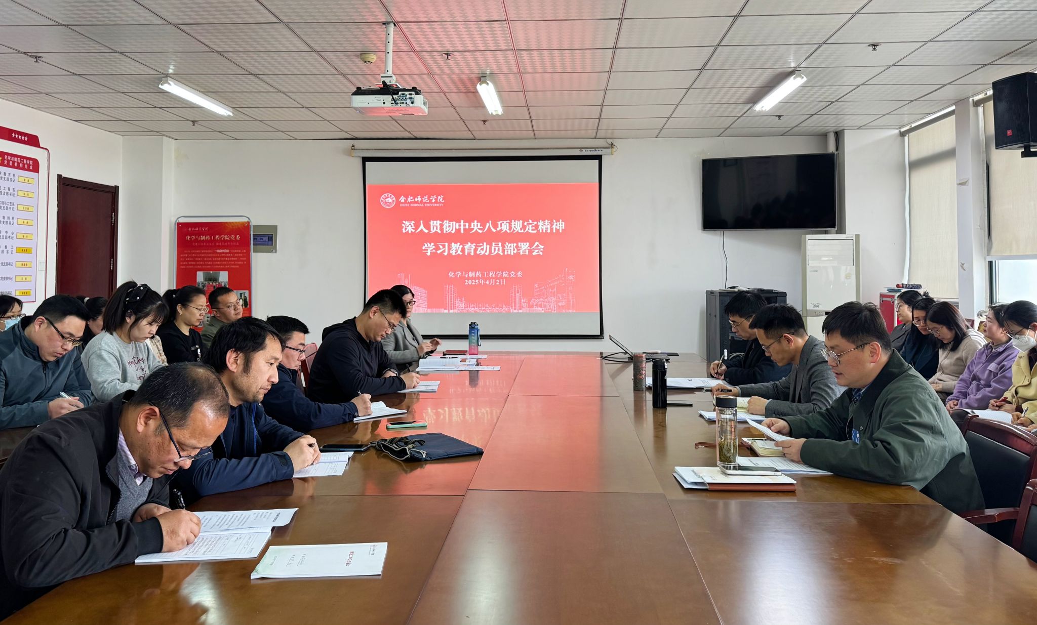 会上,集中学习了习近平总书记关于加强党的作风建设的重要论述,重温了《中共中央政治局关于改进工作作风、密切联系群众的八项规定及实施细则》,传达了中央、省委党的建设工作领导小组会议精神、校党委书记徐成钢在学校动员部署会上的讲话精神和学校相关工作实施方案。