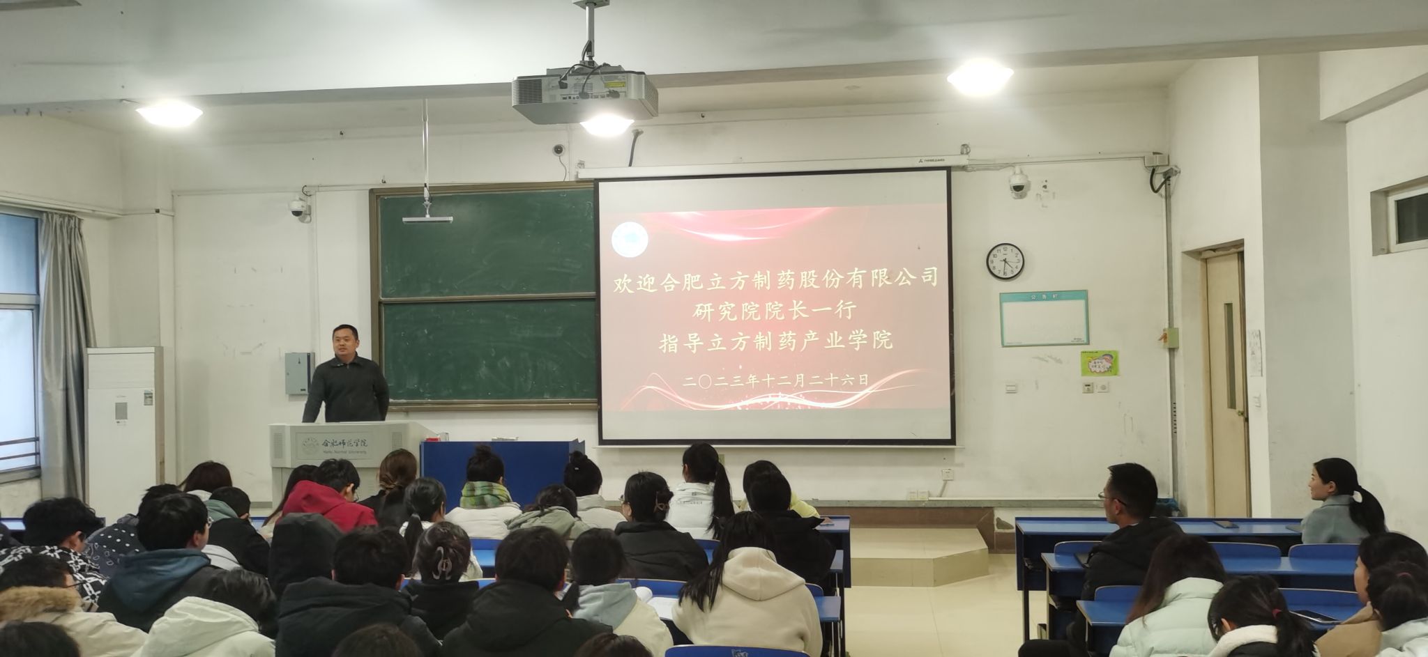 12月26日下午,永利集团304am登录与合肥立方制药股份有限公司制药研究院在逸夫楼A104成功举办了产业学院班“共建立方产业学院,促产教融合发展”学生见面会,进一步促产教融合发展,推进双方共建高端制剂与创新辅料现代产业学院建设。合肥立方制药股份有限公司制药研究院院长周化,副院长张良,蒋敏燕研究员,永利集团304am登录院长朱金苗,制药工程教研室主任郑斌,以及2022级制药工程专业学生及相关产业学院教师参加会议,郑斌主任主持见面会。