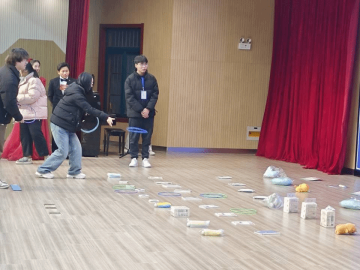 暖场节目以套圈和抽奖的形式,200多件奖品成功吸引了台下400多名同学的关注和互动,助燃了同学们的热情,使晚会参与值达到了最高值。
