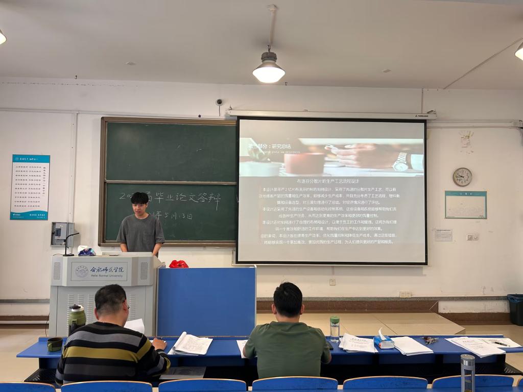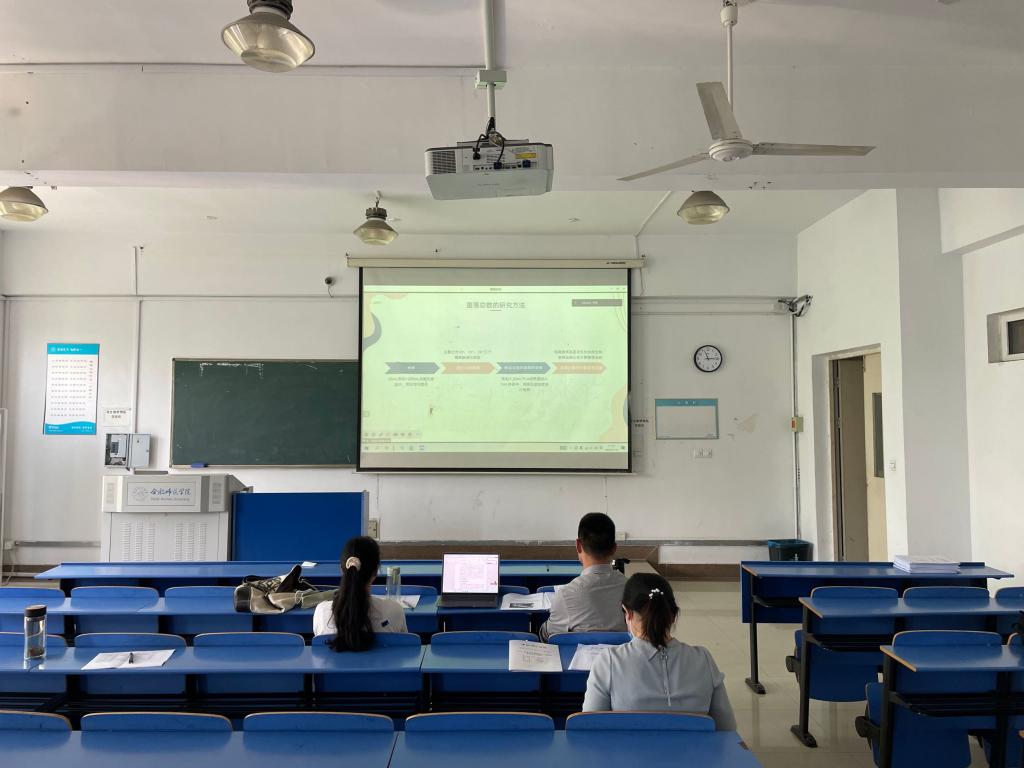 本次答辩分为两部分。第一部分是参与答辩学生进行论文PPT汇报。在汇报环节,学生详细介绍了论文的研究背景和意义、论文的研究内容和研究成果等。第二部分由答辩组老师根据学生汇报及论文内容进行提问,学生现场作答。答辩期间,答辩组教师本着严谨负责的态度对学生毕业论文进行细致全面的评审,提出了指导性意见、修改完善建议。答辩组依据学生论文质量和现场答辩情况,评定出最终成绩,要求学生根据答辩组的意见认真修改毕业论文。