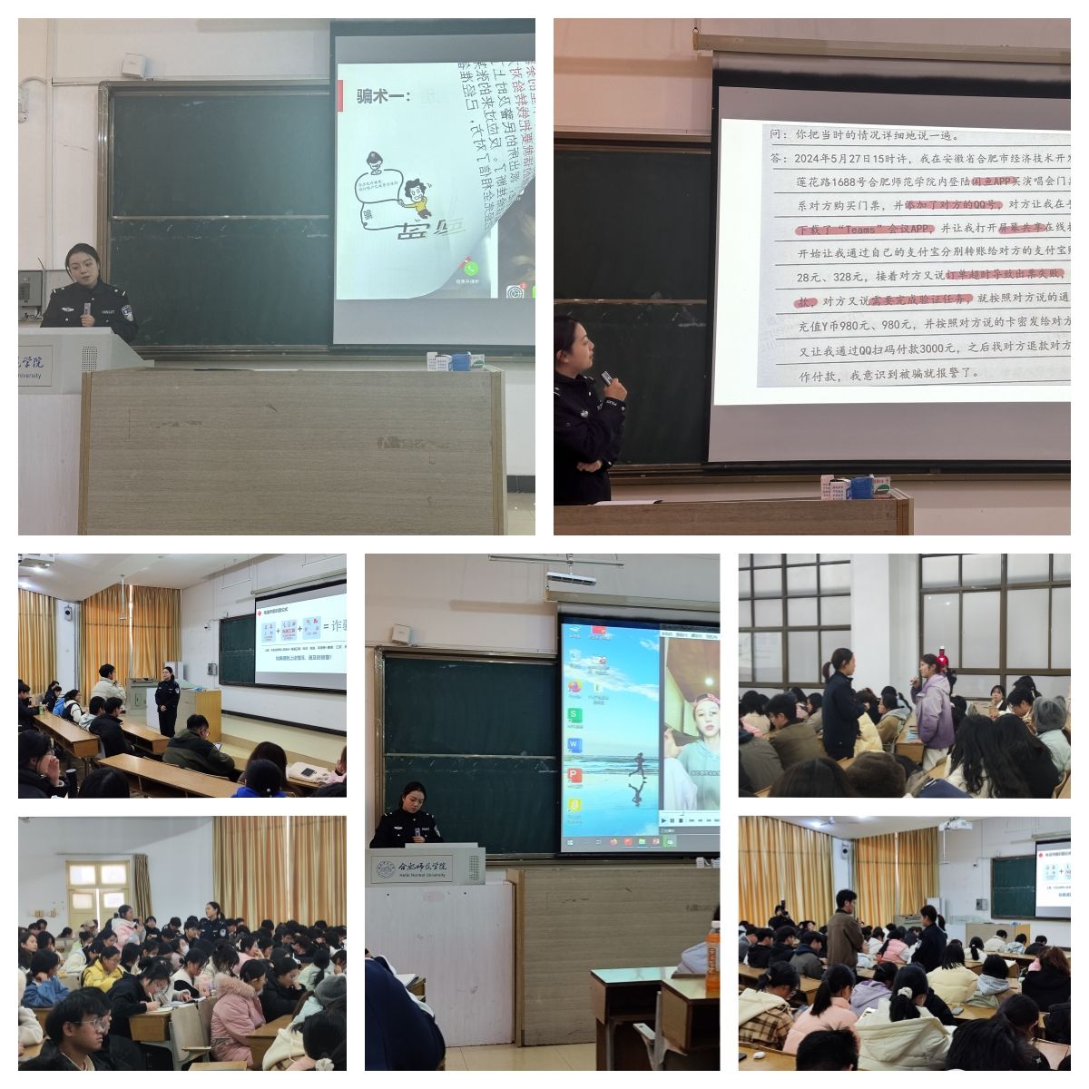 为进一步筑牢学生防范电信诈骗意识,加强学生识骗防骗能力,规范使用网络,守护个人信息安全。永利集团304am登录联合校保卫处、合肥市公安局经开分局于11月27日下午在博约楼101阶梯教室开展了防范电信诈骗,守护网络安全主题教育活动。我院新生辅导员、新生学业导师及300余名学子参与了本次主题教育活动。