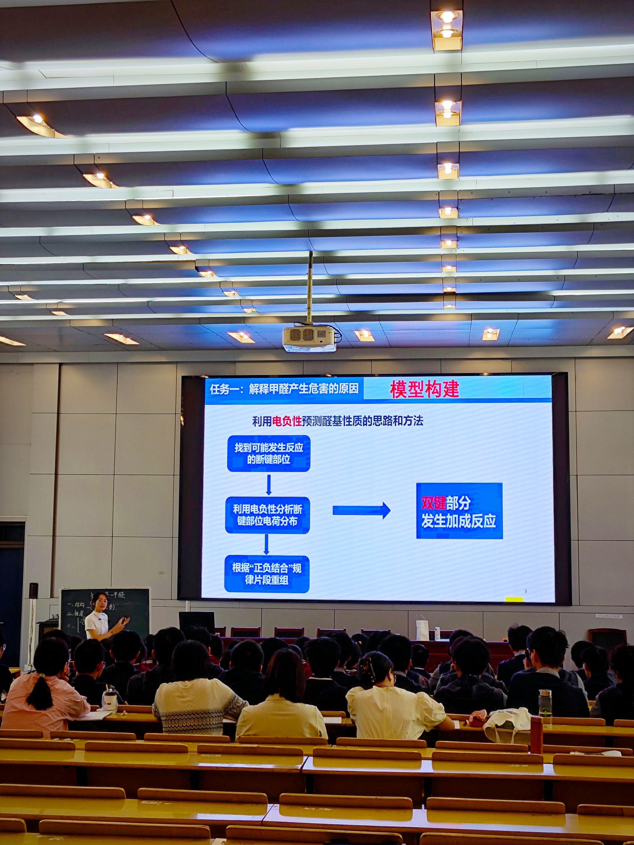 2023级化学专业学生潘璇、冯丽,肥西中学张义艳老师以高中化学人教版选择性必修3第三章第三节第一课时《醛》为主题,分别开展40分钟的同课异构教学。三节课后,王伟,陈文静、朱成东先后对三节课从不同角度进行了点评。
